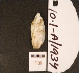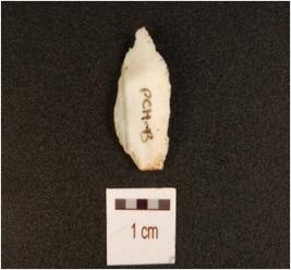 | Description / विवरण | Chert flake with flake scars on dorsal side. |