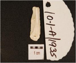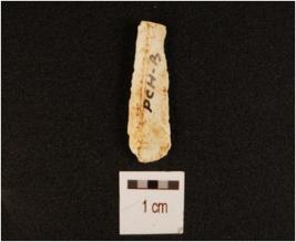 | Description / विवरण | A chert blade with use-wear marks along the cutting edge, triangular cross section and prepared platform. |
