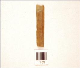 | Description / विवरण | A parallel sided blade made on chert ridge on dorsal, use-marks on edges and diffused bulb on ventral. |