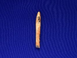| Description / विवरण | Trench B X 1,LxB-D From peg no. X x 1.40 mts -2.20 mts, Stratum Layer 3 A It is just a piece of bone and it is not easy to know that how long it might have been. Surface is smooth and shining and tapering towards the tip and there are many fine cracks on the surface. |