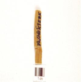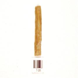 | Description / विवरण | A parallel sided broken blade made chert flake scars, and one ridge on the dorsal side and use marks on along working edges and triangular cross-section. |