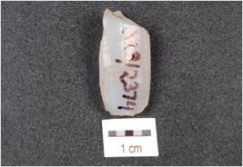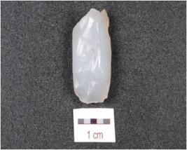 | Description / विवरण | A fluted core made of chalcedony with flake scars on the surface and partly broken. |