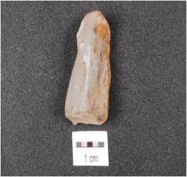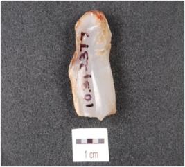 | Description / विवरण | A core of chalcedony with flake scars around the surface with cortex. |