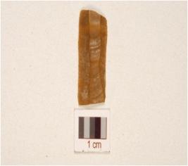 | Description / विवरण | A parallel sided blade made on chert, ridge on the dorsal and use marks on along working edges . |