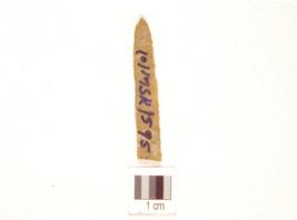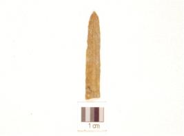 | Description / विवरण | A blade made on chert ridge on the dorsal, use marks on along working edges and pointed at distal end. |
