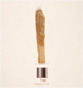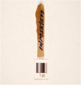 | Description / विवरण | A parallel sided blade made on chert, ridge on the dorsal diffused bulb on ventral and use marks on along working edges. |