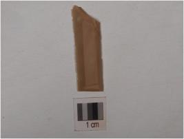 | Description / विवरण | A fragment of chert stone blade, having two ridge on dorsal vertical in smooth and use marks at edge. |