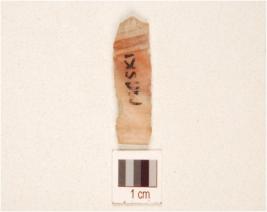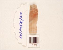 | Description / विवरण | A fragment of parallel sided blade, made on chert, ridge on dorsal, broken distal end and use marks on along working edge. |