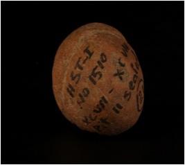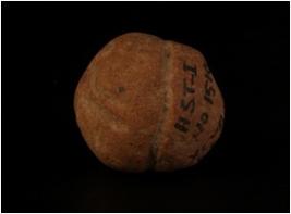 | Description / विवरण | Sling terracotta sling ball, rough surface and incised line in middle. |
