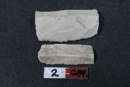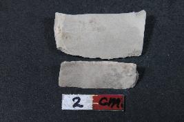 | Description / विवरण | Fragment of blade having two dorsal ridges and rough surface. The smaller blade has one dorsal ridge. |