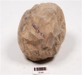 | Description / विवरण | A core on chert, circular in shape with flake scars. |
