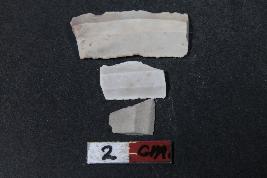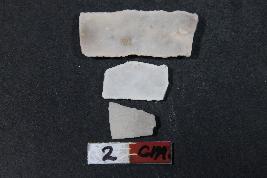 | Description / विवरण | Fragments of blade having two dorsal ridges and rough surface.One of the blade has Length-1.6cm and Width-0.8cm. |
