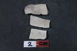 | Description / विवरण | Fragment of a blades with two dorsal ridge having smooth surface and shorter blade has Length- 1.3 cm, Breadth- 0.7 cm |