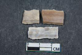| Description / विवरण | Fragments of blades with two dorsal ridge having smooth surface. One of the blade has length-1.7cm and breadth-1.3cm. |