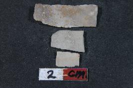 | Description / विवरण | Fragment of a blade with two dorsal ridges having smooth surface and shorter blade has Length- 1 cm, Breadth- 0.5 cm |