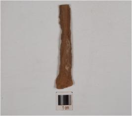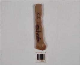 | Description / विवरण | A chert blade with prominent bulb on ventral and irregular retouch along the cutting edges and has trapezoidal cross-section. |