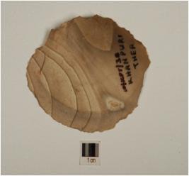 | Description / विवरण | A scraper made on chert with a ridge on dorsal , chipped off ventral ,irregular retouches on working edge and triangular cross-section. |