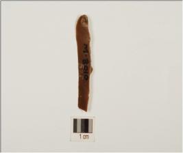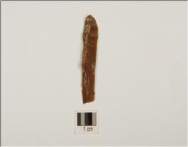| Description / विवरण | Fragment of chert blade with prominent mid ridge on dorsal, diffused bulb slightly chipped off on ventral, trianglar cross section, use-wear marks on cutting edge and broken along distal end. |