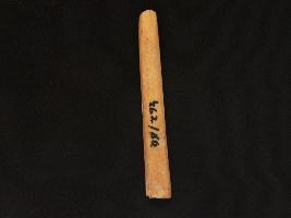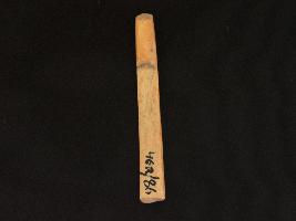 | Description / विवरण | Trench B-1, Depth 2.00 mtr, Stratum Pit 1 sealed by Layer 2. It s a piece of bone flaked almost half. By the given piece it cannot be decided easily that how long it might have been. The surface is smoothened or polished. It is tapering towards one end. There are many marks on its surface. It s appearance is brownish. |