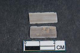 | Description / विवरण | Fragments of a blades with Two dorsal ridges having smooth surface, one fragment has length 0.8 cm and Breadth 1 cm |