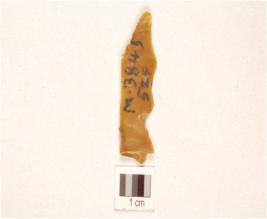 | Description / विवरण | A flake made on chert ridge on dorsal and pointed at distal end. |
