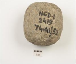 | Description / विवरण | A hammer stone, circular cross section and rough surface. |