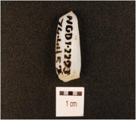 | Description / विवरण | A chalcedony fluted core, four blade scars, cortex and flake scars on the surface. |