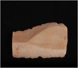 | Description / विवरण | Fragment of blade made of chert with one prominent ridge. It is small in size with use wear marks on cutting edges. |