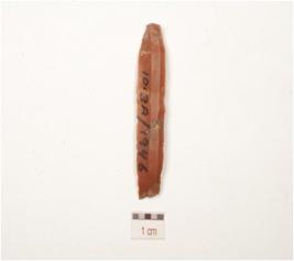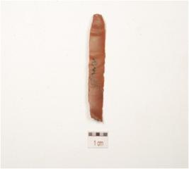| Description / विवरण | A blade made of chert, prominent bulb on the ventral side, midridge on the dorsal side and use wear marks on cutting edges. |