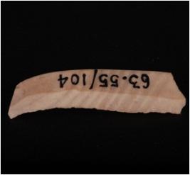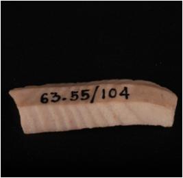 | Description / विवरण | Fragment of parallel sided chert blade with two ridges on dorsal side. Slightly bent at distal end and use wear mark at cutting edges. |