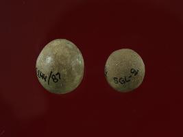 | Description / विवरण | Trench A-9, LxB-D 4 mtrs x 4.5 mtrs - 3.25 mtrs B peg ZA9, Stratum Layer 11 There are two balls made of baked clay. Both are almost round in shape. One is bigger in size than the other one. Surfaces are smooth. There are many irregular marks on there surfaces. Appearence is muddy. |