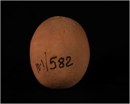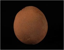 | Description / विवरण | A handmade terracotta sling ball circular in shape. |