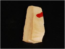 | Description / विवरण | Chert blade with a mid ridge and use-ware marks along the cutting edges and triangular in section. |