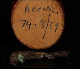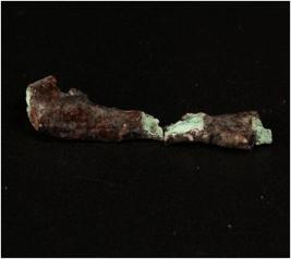 | Description / विवरण | Fragment of copper arrow head, patina formation on surface and corroded. |