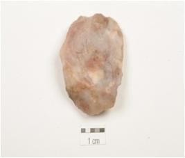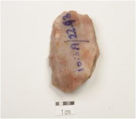 | Description / विवरण | A flake made on carnelian, flake scars on dorsal side, prominent bulb on ventral side, prepared platform, uneven shaped. |