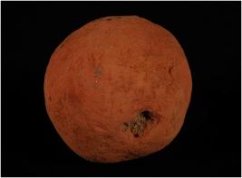 | Description / विवरण | A hand made terracotta sling ball, uneven circular shaped. Rough surface and pain hole on surface. |