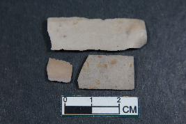 | Description / विवरण | Fragments of blades with two dorsal ridges in two of them and one dorsal ridge in one of them. One of them is 2.1cm in length and 1.3cm in breadth.Two of them have bulb of percussion and they have smooth surface. |