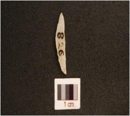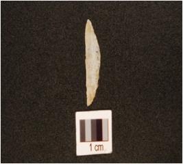 | Description / विवरण | A chalcedony backed point with mid ridge on dorsal, use-wear marks on cutting edge and triangular cross-section. |