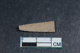 | Description / विवरण | A fragment of a blade having two dorsal ridges.It has smooth surface. |