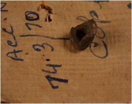 | Description / विवरण | A broken piece of copper bead, surface is corroded. |