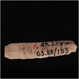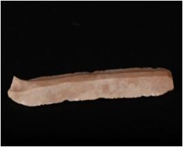 | Description / विवरण | Fragment of Parallel sided chert blade with two ridges on dorsal side use-wear marks on cutting edges and trapezoidal section. |