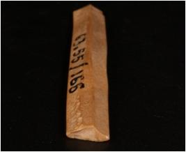 | Description / विवरण | Chert parallel sided blade, one prominent ridge on dorsal side and bulb on ventral, one end having triangular section and other end having tarpezoidal section.. |