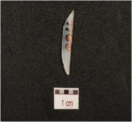 | Description / विवरण | A chalcedony lunate with double ridge on dorsal, trapezoidal cross section and backed along with pointed ends. |