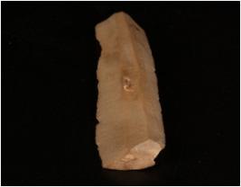 | Description / विवरण | Chert parallel sided blade, two ridge on dorsel side, ventral is flat, sharp edges, trapezoidal section. |
