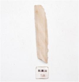 | Description / विवरण | Blade made on chert, trapezoid in section, double ridge on dorsal side, irregular marks on edges. |
