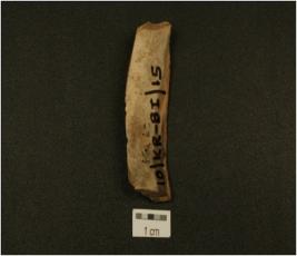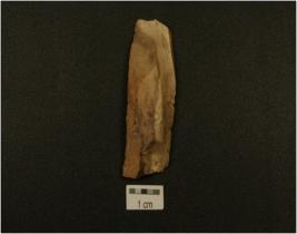 | Description / विवरण | Fragment of a parallel sided blade made of chert with both distal and proximal ends broken,has a prominent ridge on the dorsal trapezoidal cross-section and wear marks along the cutting edges. |