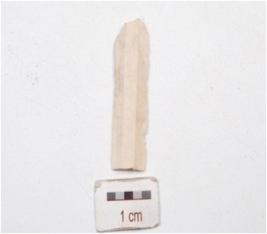 | Description / विवरण | Blade made on chert, trapezoid in section, double ridge on dorsal side, use marks on edges. |