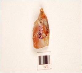 | Description / विवरण | A parallel sided chalcedony blade, double ridge on dorsal, trapezoidal cross-section, prepared platform, bulb on ventral and use-wear marks on cutting edge. |