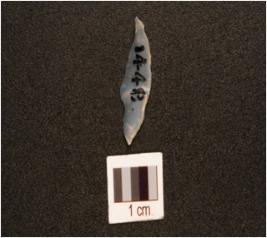 | Description / विवरण | A chalcedony blade, use-wear marks on right cutting edge. |