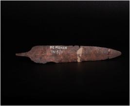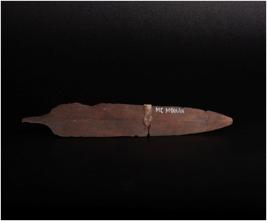 | Description / विवरण | Copper spear head one end is pointed and sharp, small thin handle and mended from middle. |